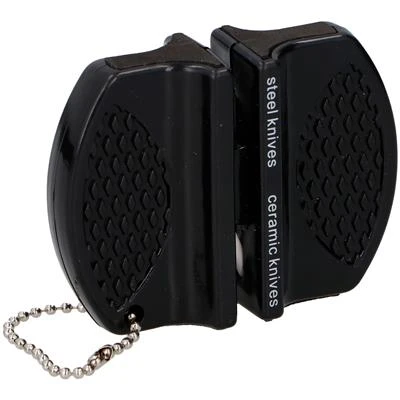 Deze draagbare messenslijper van Alpina is gemaatk van RVS en keramiek en heeft 2 gekruiste hardmetalen messen met vooraf ingestelde hoeken om elke keer de perfecte rand te garanderen. De tweede stap maakt gebruik van gekruiste keramische staven om een vlijmscherpe rand te creëren. De messenslijper kan gebruikt worden voor messen en scharen.
