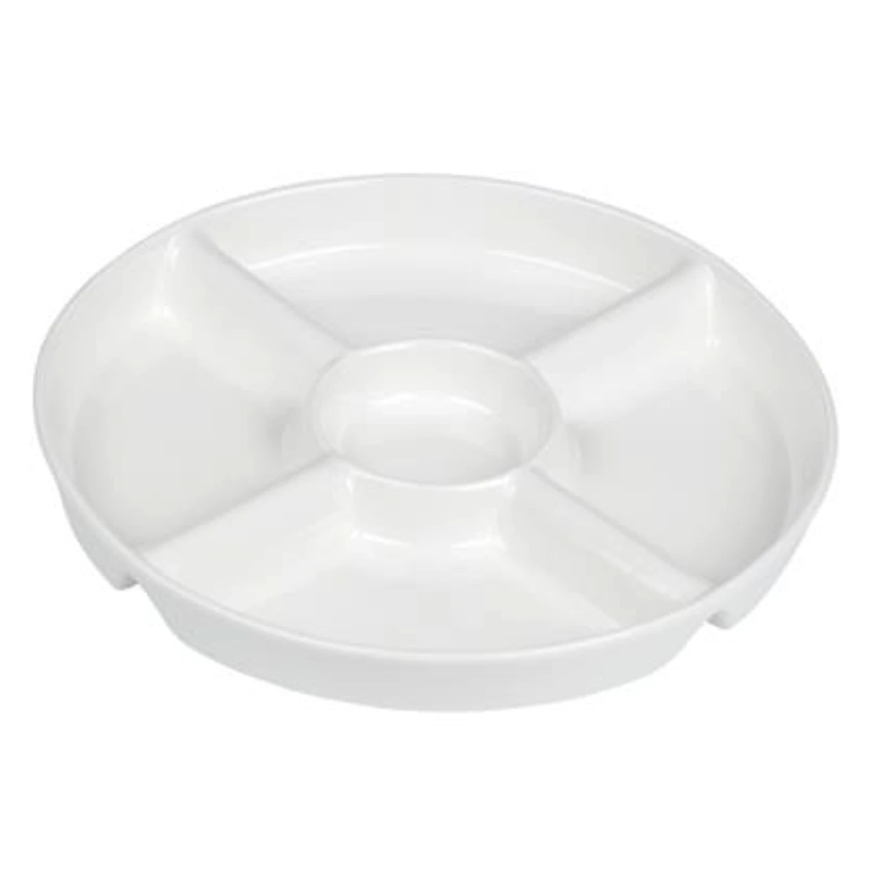 Wil jij al je favoriete snacks op tafel? Serveer ze dan op deze 5 vaks snackschaal van Alpina. Van borrelnootjes en chips tot wortel en snoeptomaatjes met een dip in het midden. Voor in het weekend of tijdens een feestje.