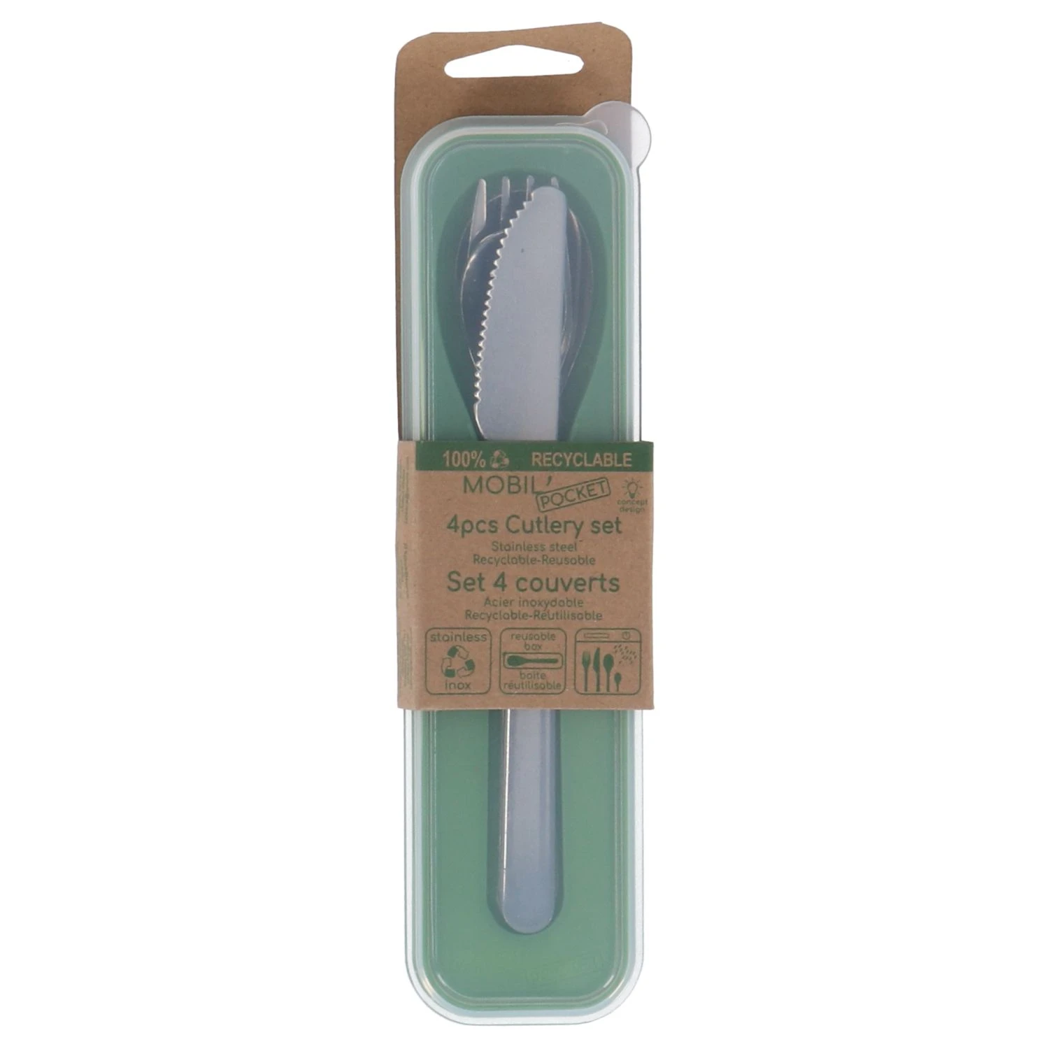 Deze bestekset is speciaal ontwikkeld voor maaltijden ‘on the go’. Of het nu gaat om een lunch in de trein, picknick in het park of een campingmaaltijd. Dit bestek van 18/0 roestvrijstaal is stapelbaar, gemakkelijk mee te nemen en past in elke tas. Het kunststof meeneem- en beschermdoosje zorgt ervoor dat het bestek voor gebruik schoon blijft en na gebruik weer ingepakt kan worden.