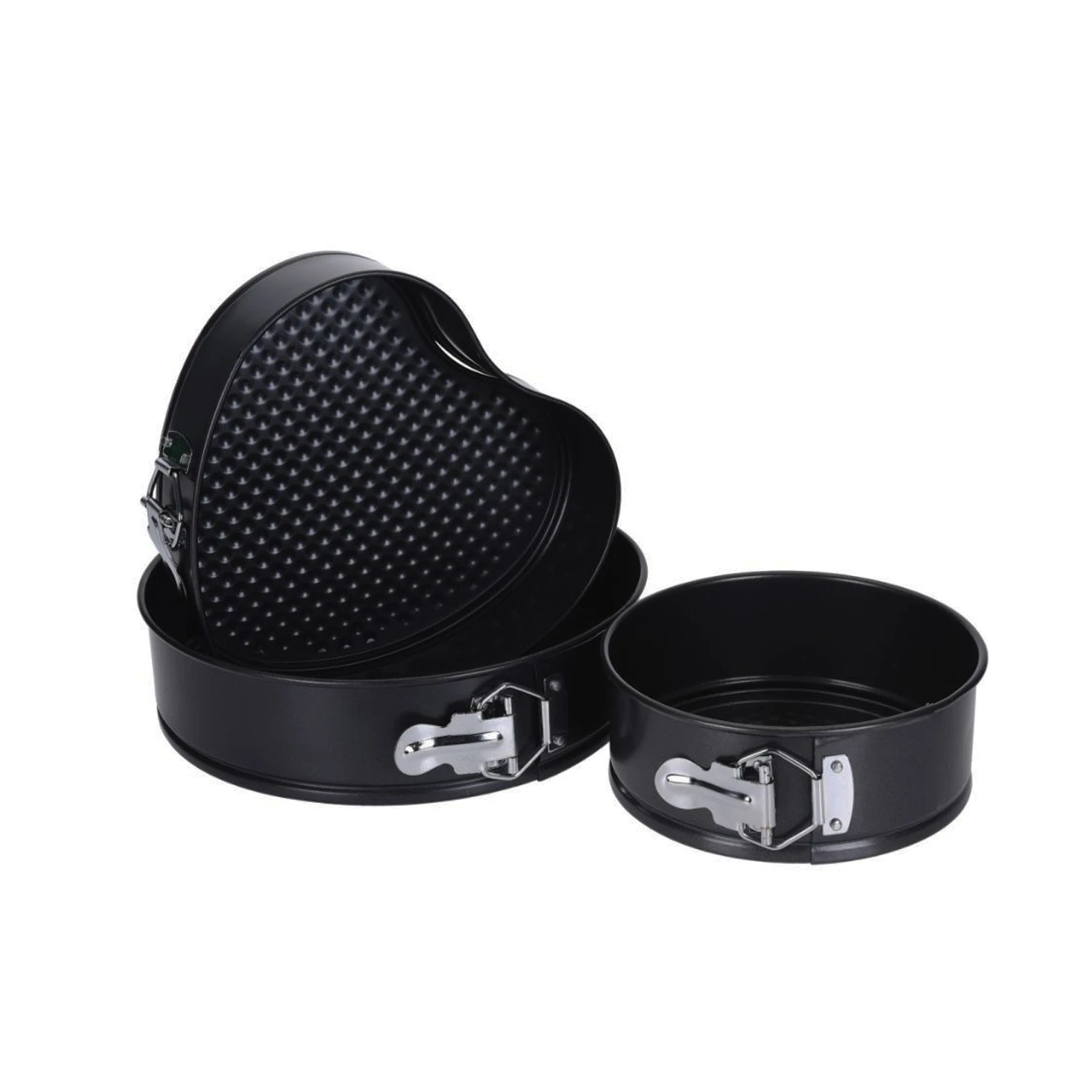Jij bakt de lekkerste taarten met de springvormen set van La Cucina. Deze driedelige set bevat 2 ronde springvormen, met diameters van 17 en 24cm, en 1 springvorm in hartvorm, met een formaat van 22x20cm. Alle springvormen zijn zwart van kleur en hebben antikleef. De vormen zijn geschikt voor bakken tot 220 graden Celsius.